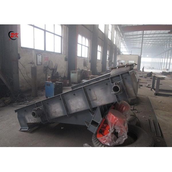 Vibrating feeder consists of vibrating frame, spring, vibrator, motor vibrating device and motor. The vibrator is made of two fixed eccentric shafts whose gears are jogged. When installation, the two gears must be jogged according to the sign. Through drive of the motor, the two eccentric shafts start rotating to produce a linear huge power which forces the feeder to vibrate. Through the vibration, The materials will slip and sling on the funnel, moving forward, when the materials pass the screening part, smaller parts will fall down, avoiding the further crushing, so screening purpose can be reached.